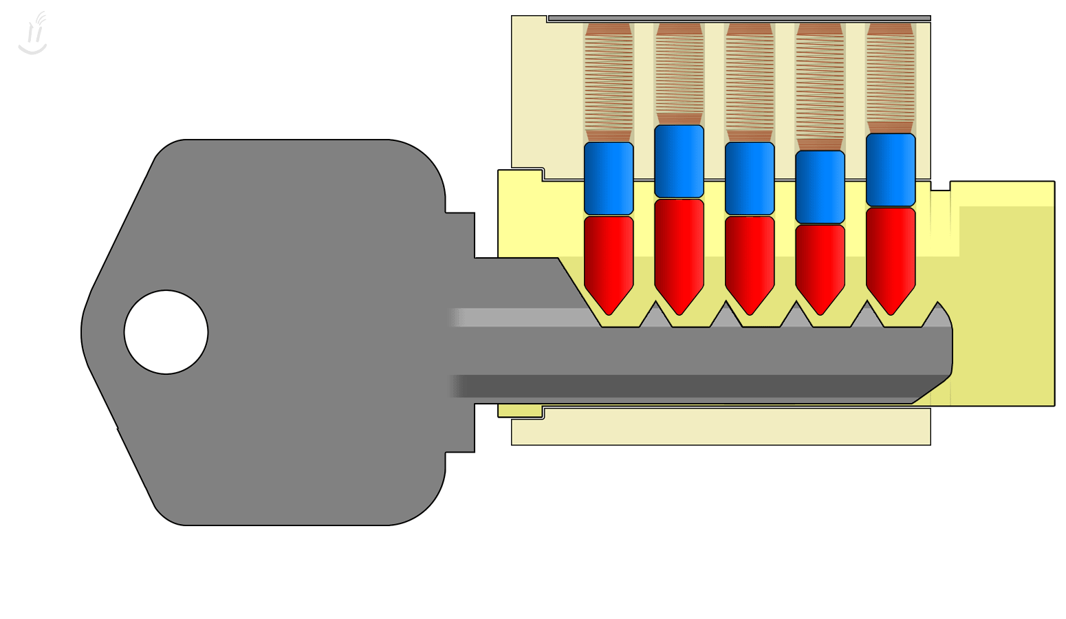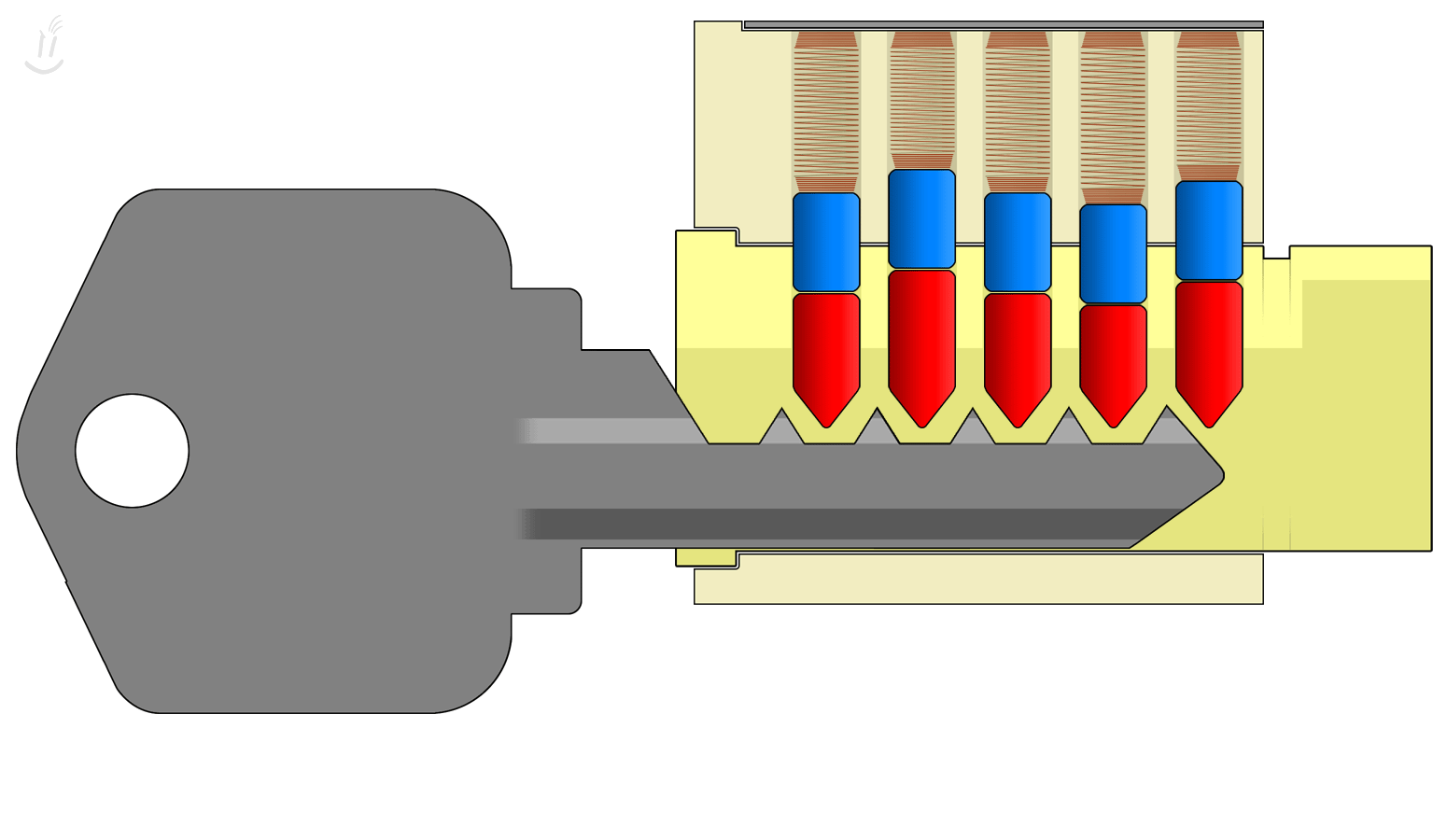 How pin tumblers are arranged and how locks operate (or fail to) with conventional keys